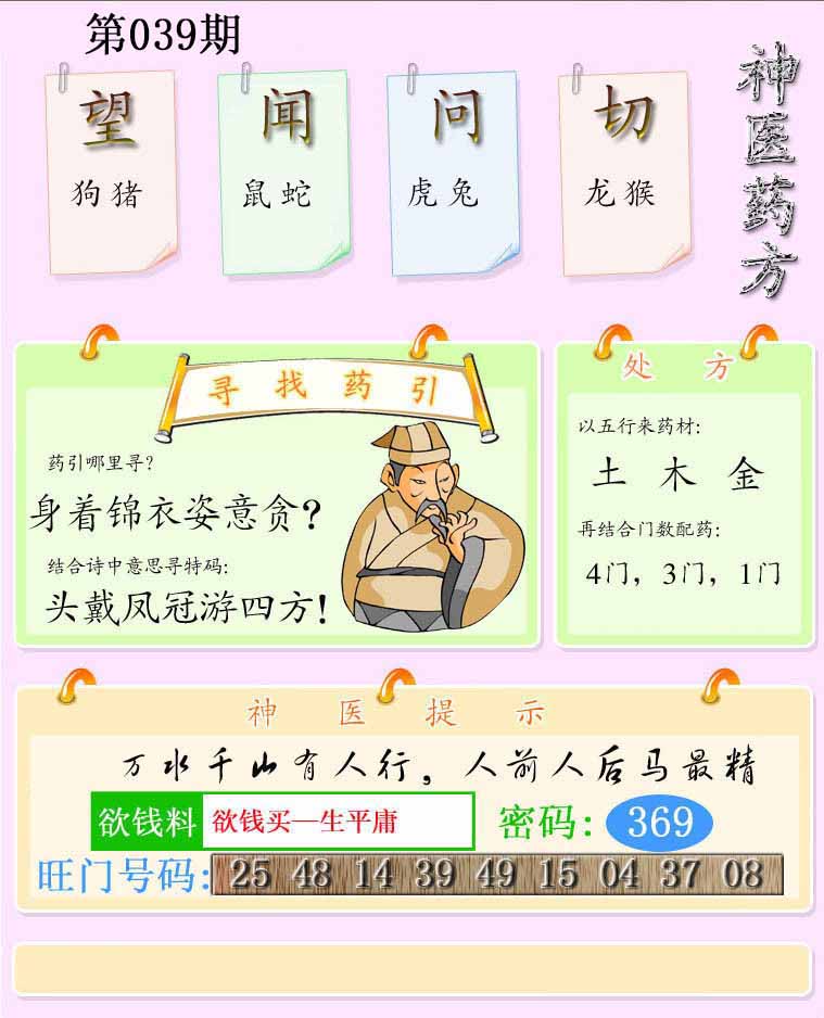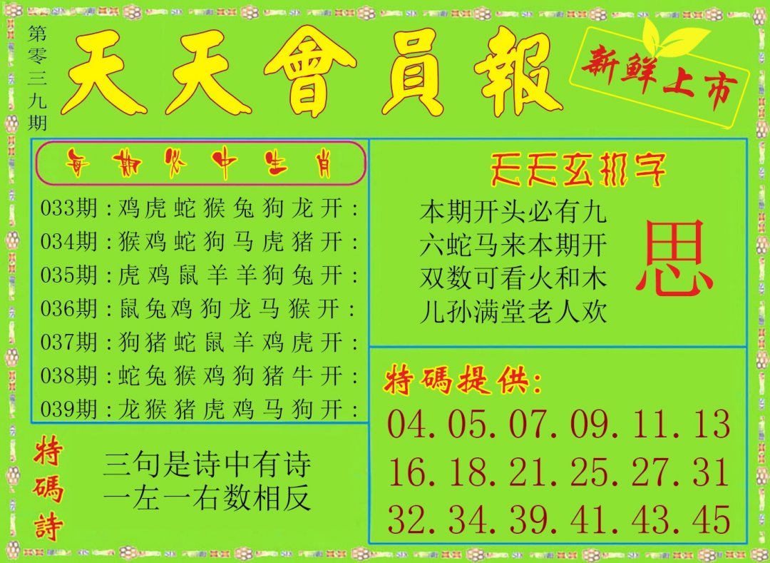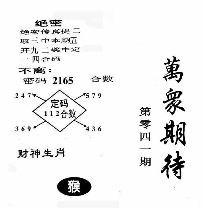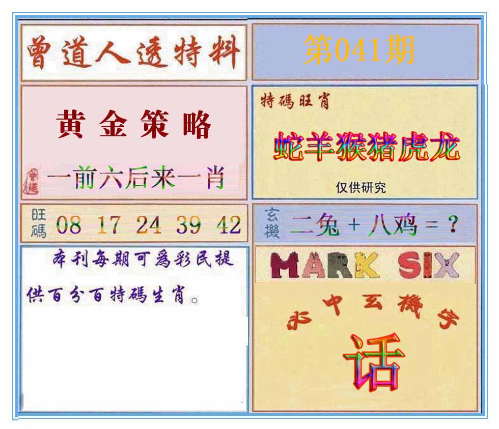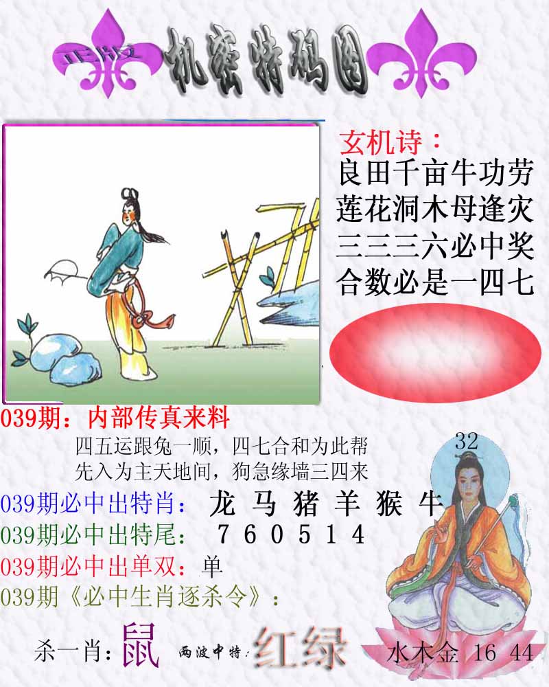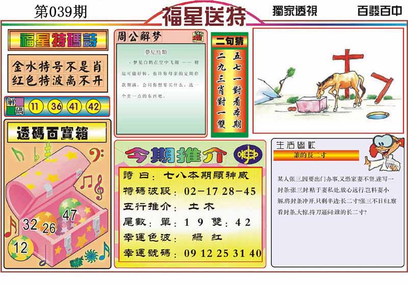 | 026期:精准五不中【39 22 25 30 41】鼠30 |