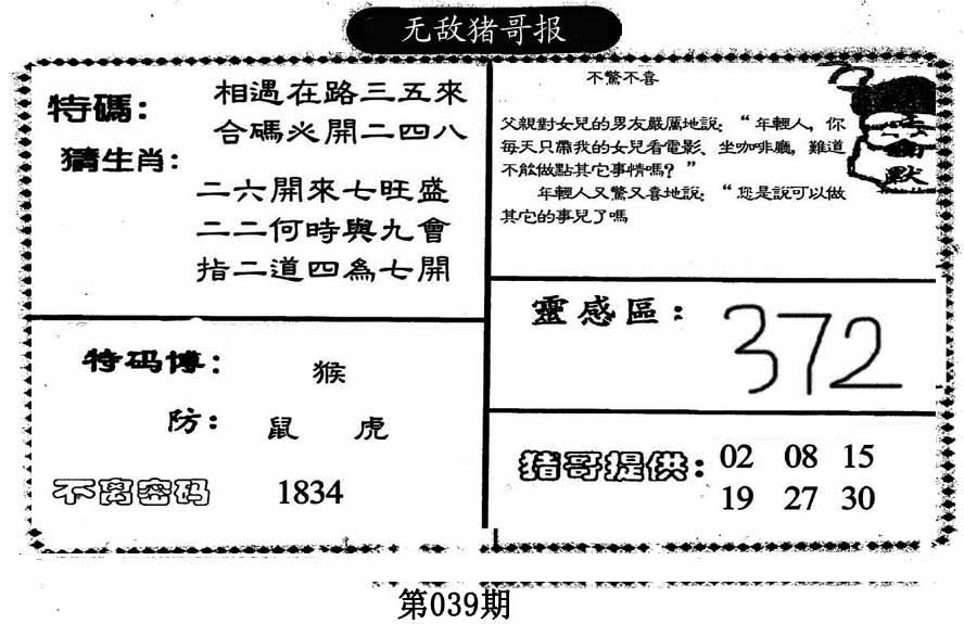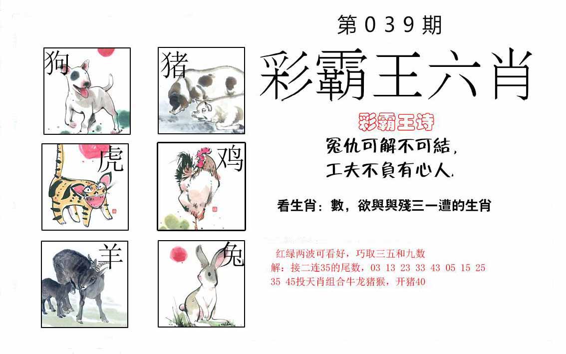 035期:【另版跑狗】开龙02 跑狗九肖:鸡虎牛兔羊狗猴猪龙 跑狗七肖:鸡虎牛兔羊狗猴 跑狗五肖:鸡虎牛兔羊 跑狗三肖:鸡虎牛 12码:30 37 15 22 08 39 47 04 40 28 02 25 | ||