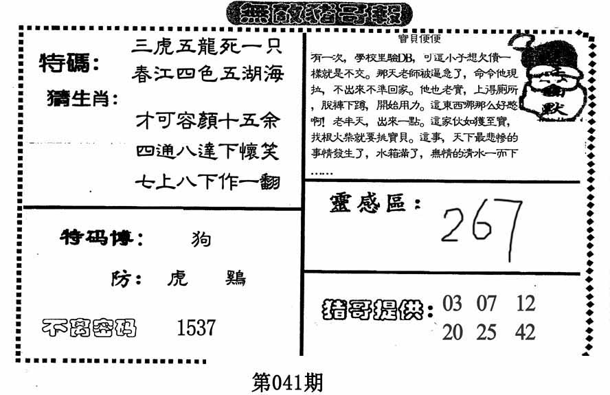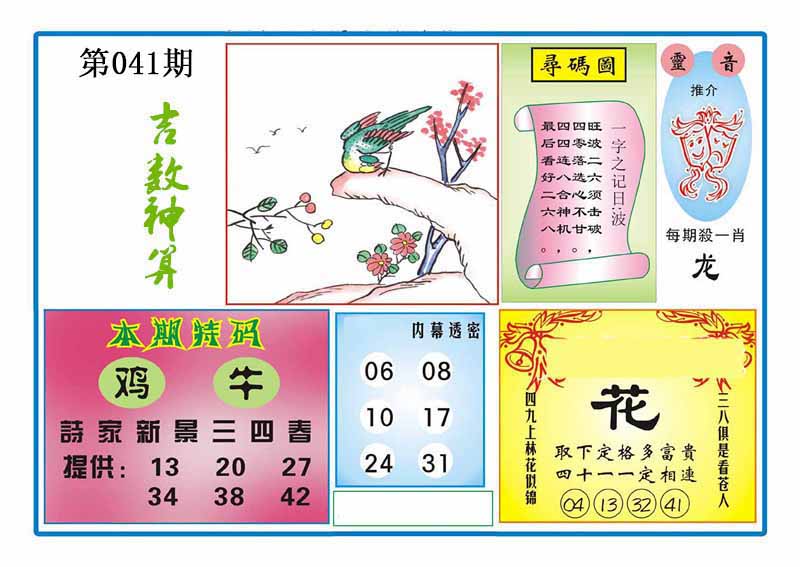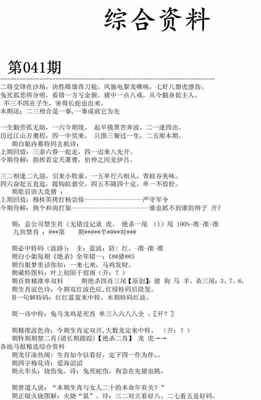 037期:【另版跑狗】开鸡45 跑狗九肖:龙蛇猴兔狗羊马鸡虎 跑狗七肖:龙蛇猴兔狗羊马 跑狗五肖:龙蛇猴兔狗 跑狗三肖:龙蛇猴 12码:24 20 28 07 09 16 19 06 30 03 02 45 | ||