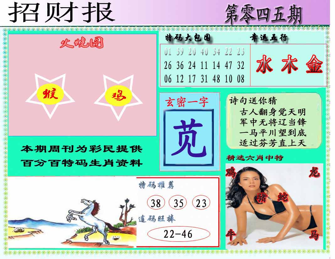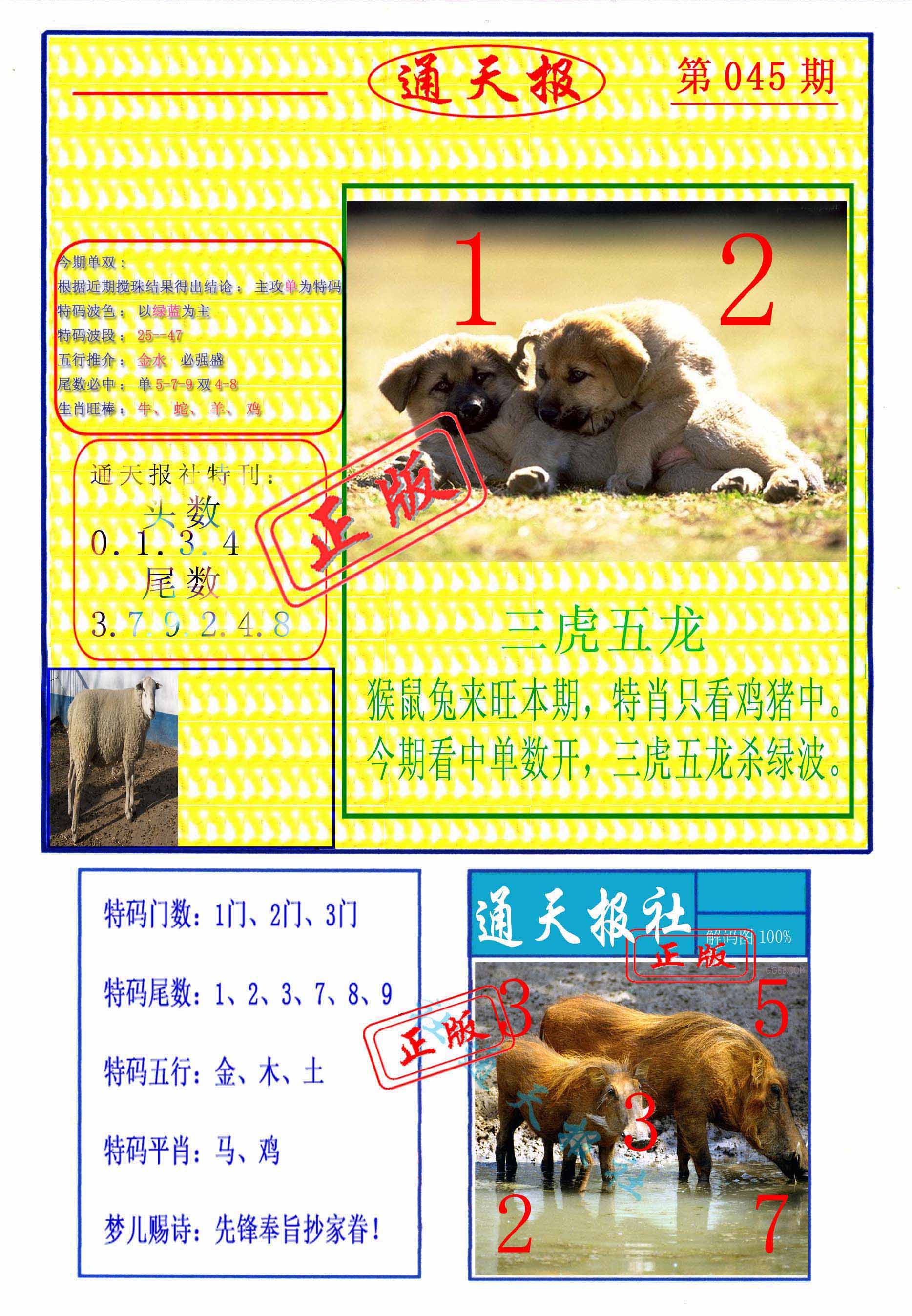 045期推荐六肖:<狗猪猴龙虎牛>内幕资料请大胆下注! | ||
