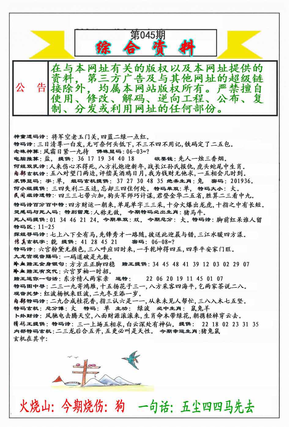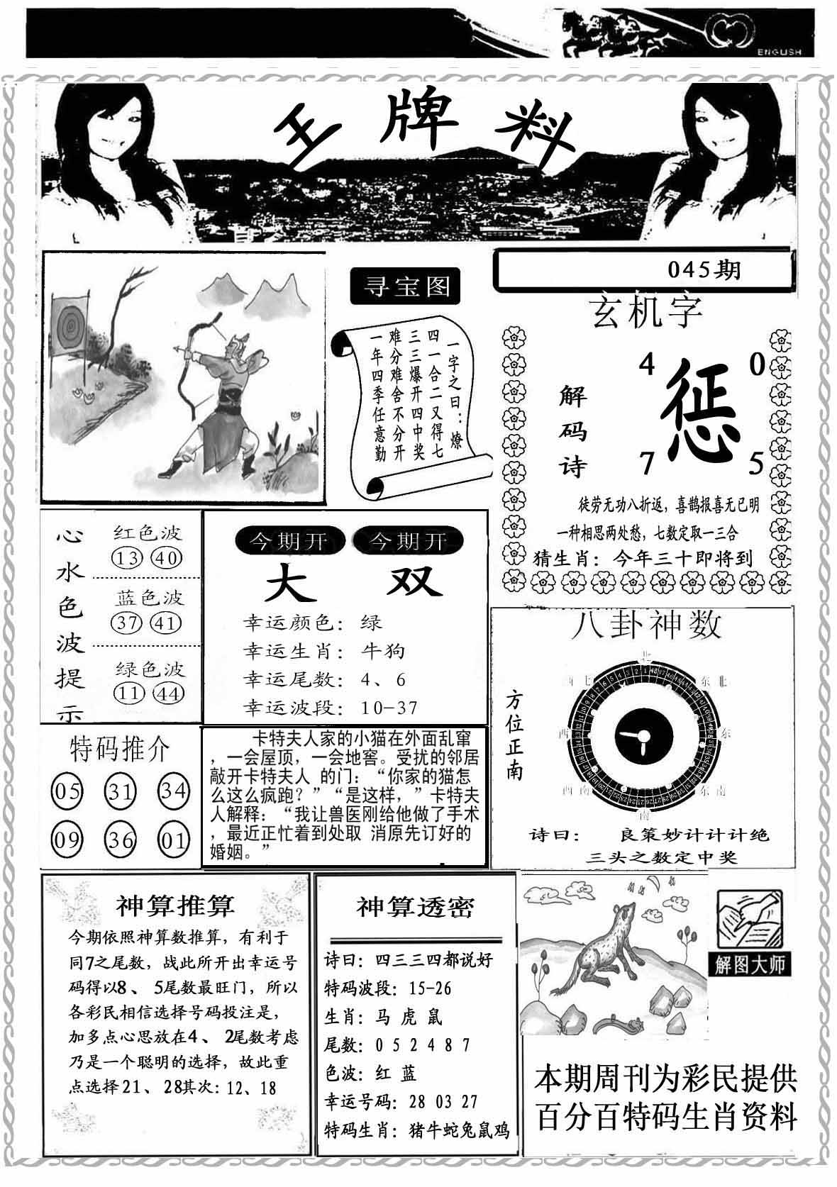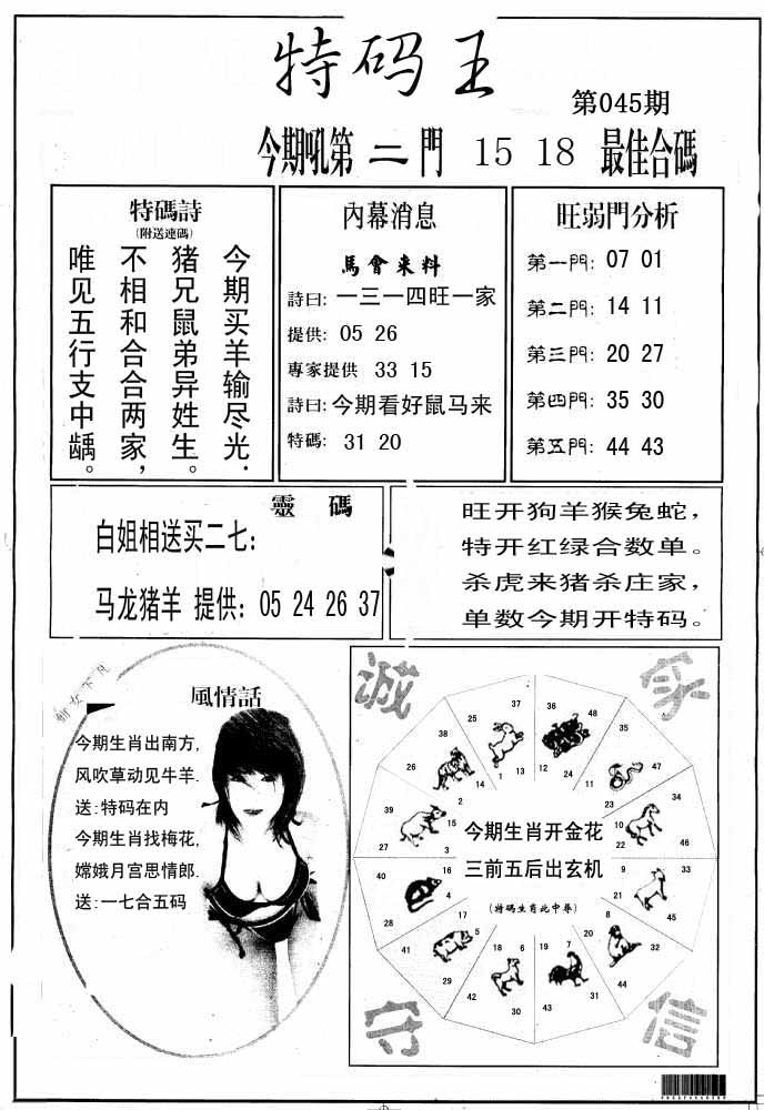 | 045期:《主攻:内幕规律平特肖:<狗>下50万》! | ||