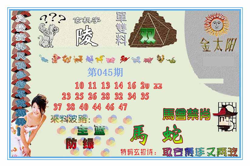 | 045期内部①肖①码:<蛇01->信心百分百包您中奖哦! | ||
