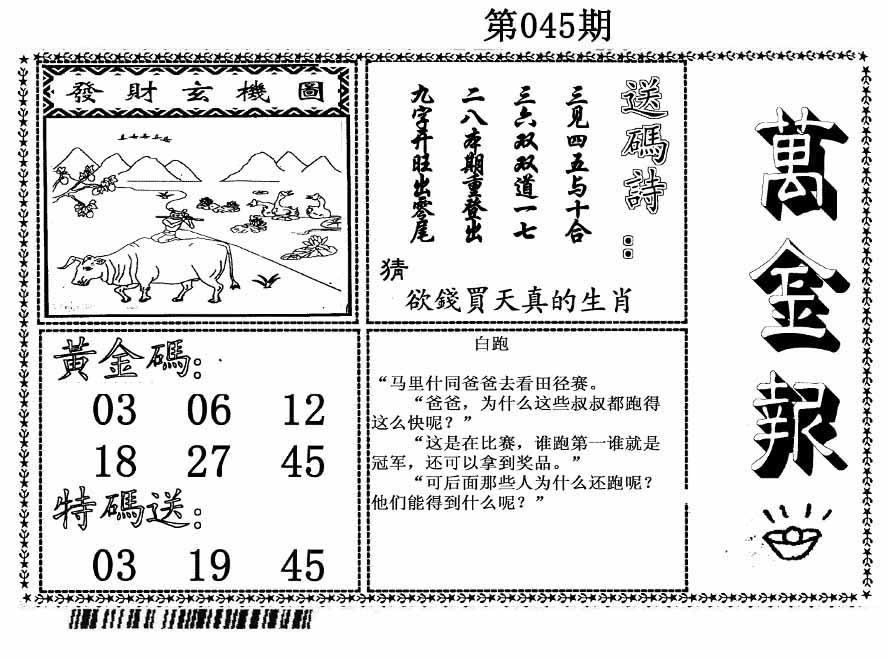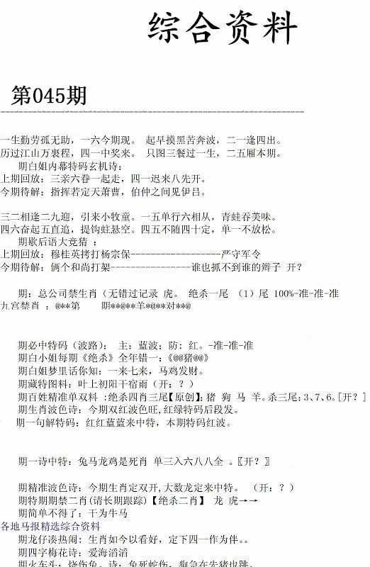 | 045期单双中特[单单单]开?00 |