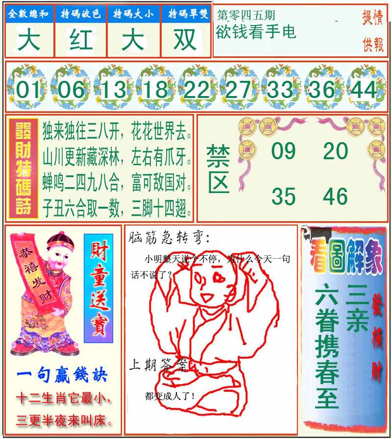 045期原创20码中特开:?00 13,01,28,29,02,11,44,31,10,23 19,35,16,22,45,34,42,39,15,47 |