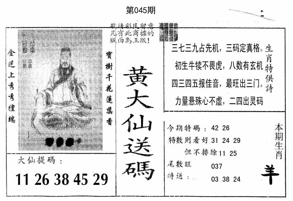 | 045期推荐五码:<42 39 26 13 37>大胆下注十万让你赚百万!