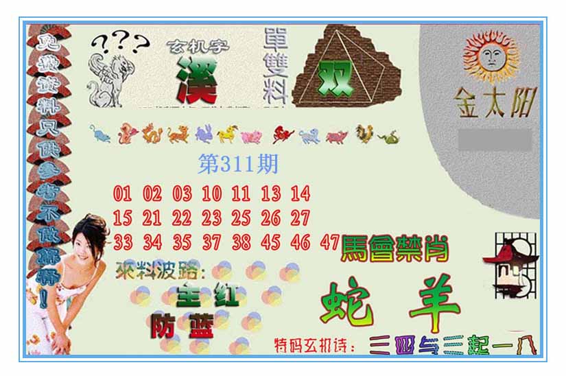 311期推荐六肖:<兔鼠马狗猴龙>内幕资料请大胆下注! | ||