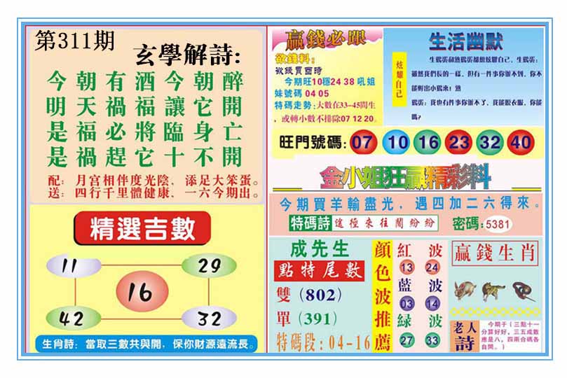 | 311期:神奇七尾【0 3 5 8 2 7 9】开:?00 |