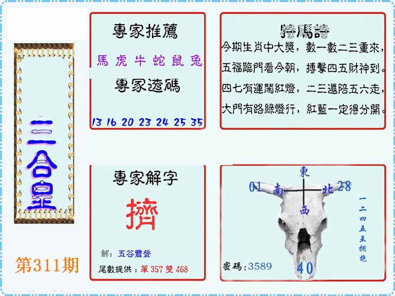 | 305期:神奇七尾【6 2 8 9 0 3 5】开:蛇13 |
