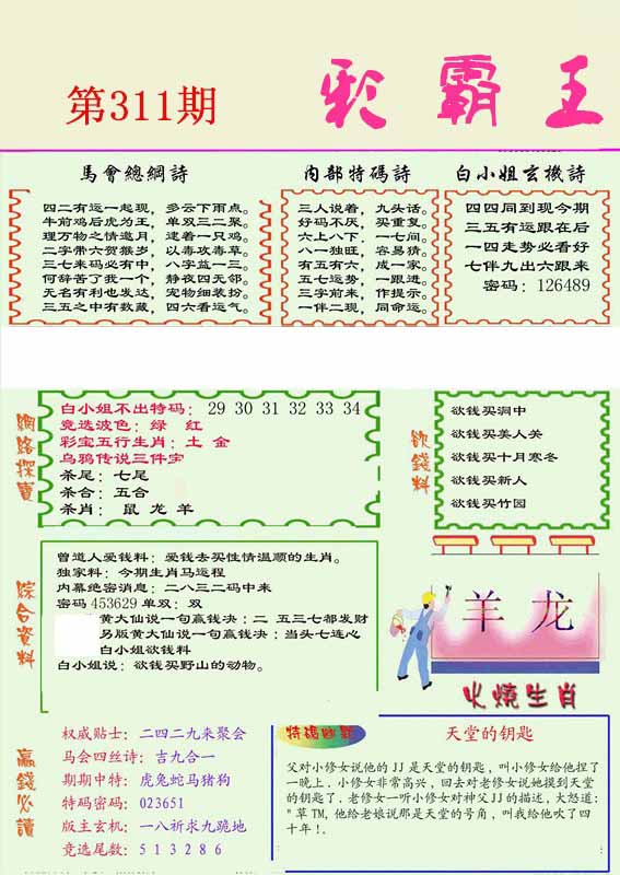 | 311期:《主攻:内幕规律平特肖:<龙>下50万》! | ||