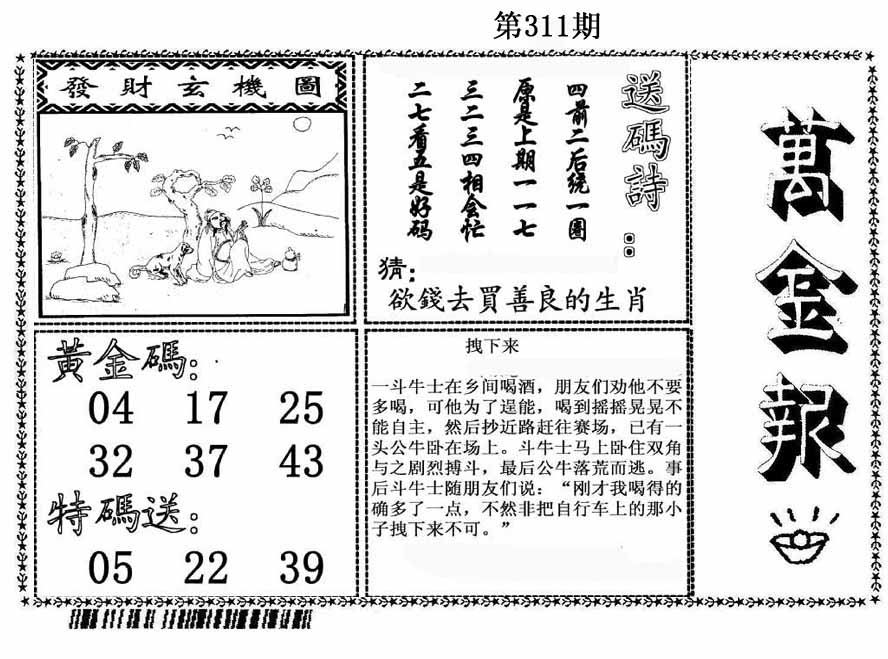 | 311期:精准五不中【25 43 37 14 32】?00 |