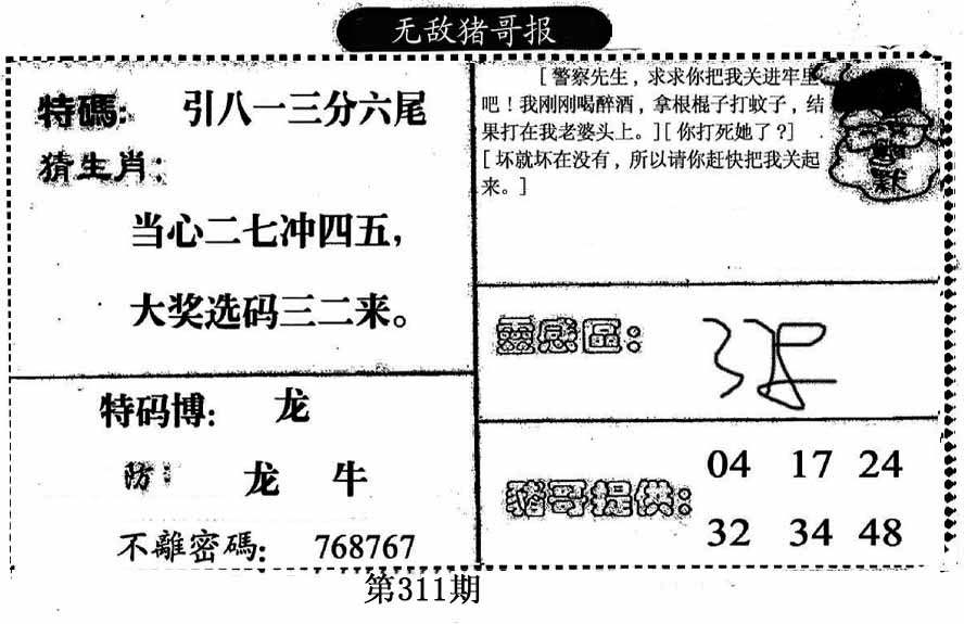 | 304期:神奇七尾【6 3 4 8 1 5 2】开:猪31 |