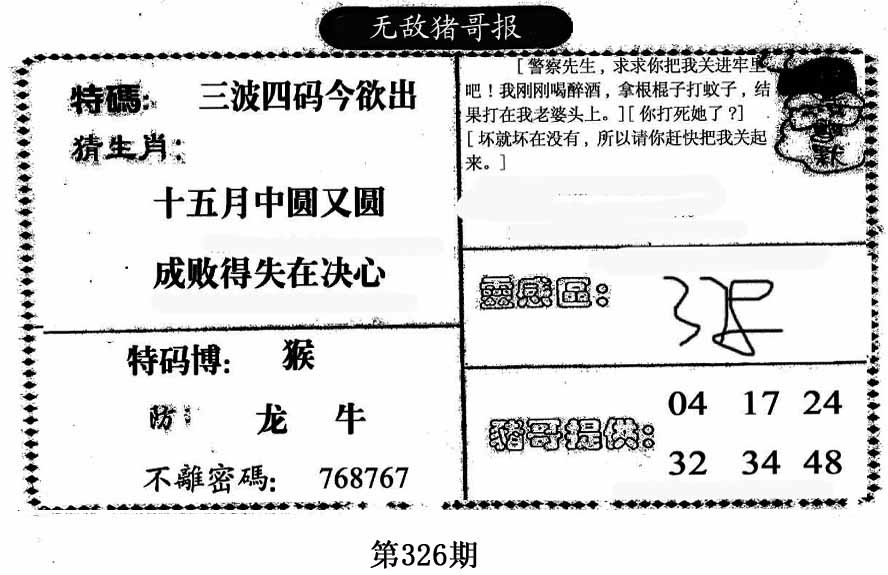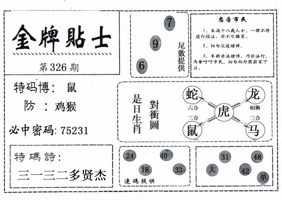 | 326期:《主攻:内幕规律平特肖:<狗>下50万》! | ||