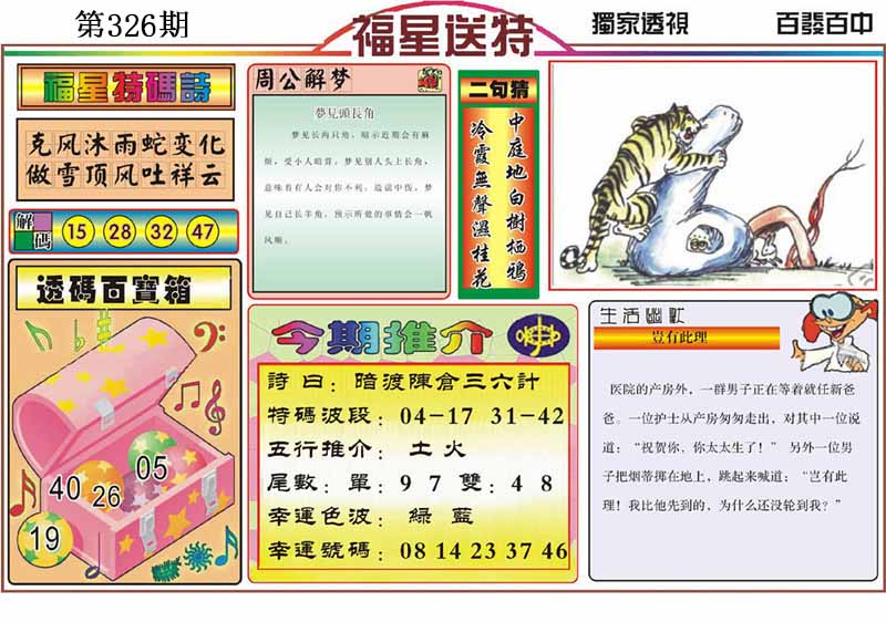 | 325期:神奇七尾【9 1 3 6 7 8 4】开:虎40 |