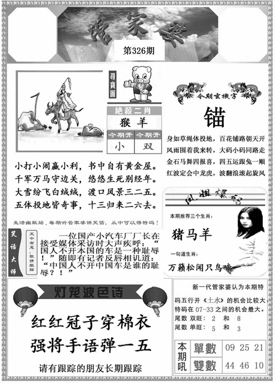326期推荐六肖:<牛兔羊虎龙鸡>内幕资料请大胆下注! | ||