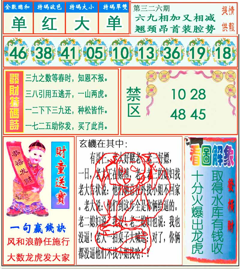 325期:【另版跑狗】开虎40 跑狗九肖:鼠猴狗虎牛蛇猪羊马 跑狗七肖:鼠猴狗虎牛蛇猪 跑狗五肖:鼠猴狗虎牛 跑狗三肖:鼠猴狗 12码:28 01 46 23 49 12 14 11 39 19 21 36 | ||
