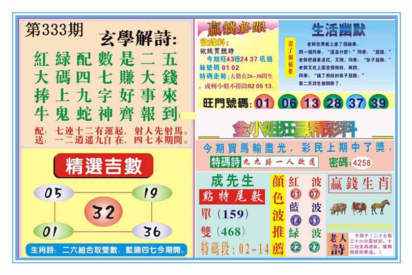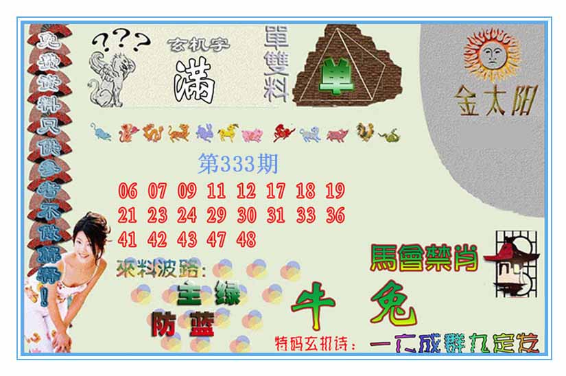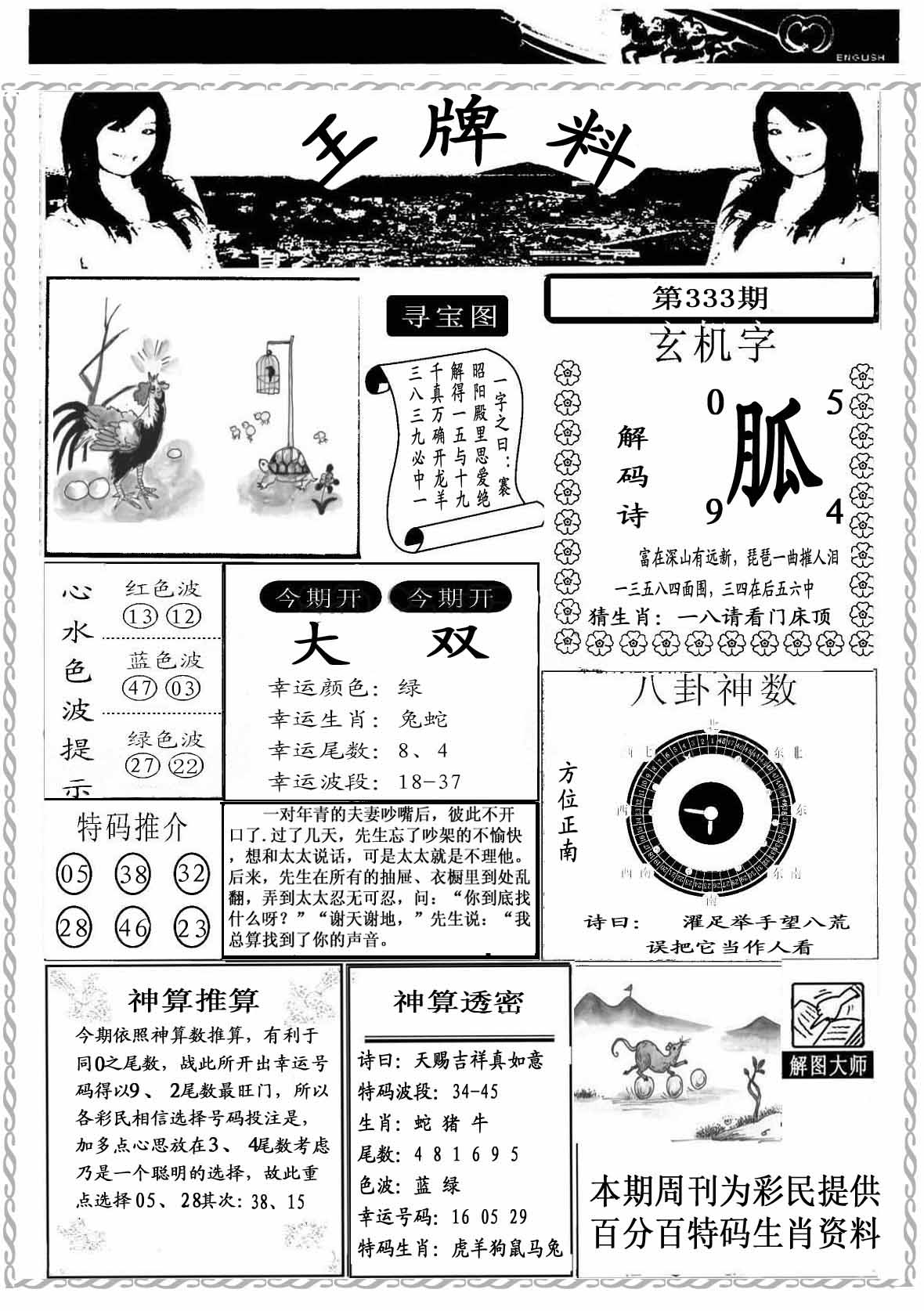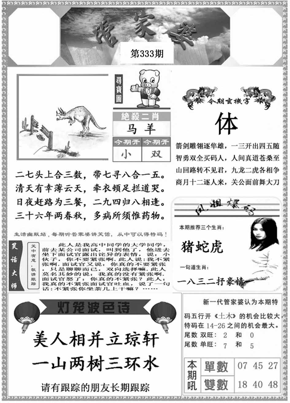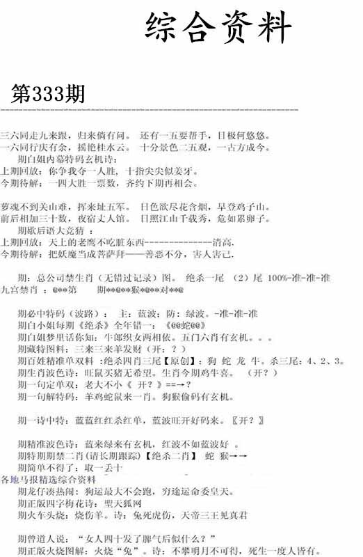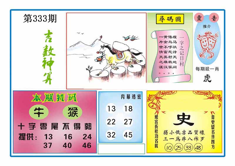 | 333期:《主攻:内幕规律平特肖:<马>下50万》! | ||