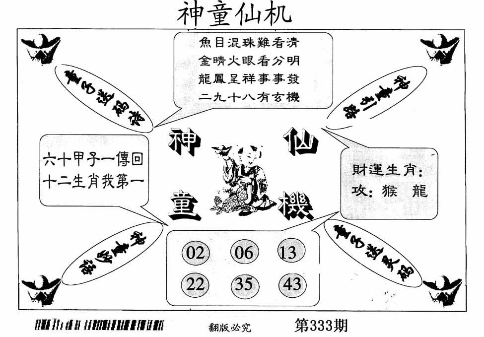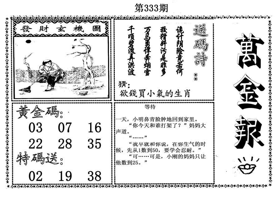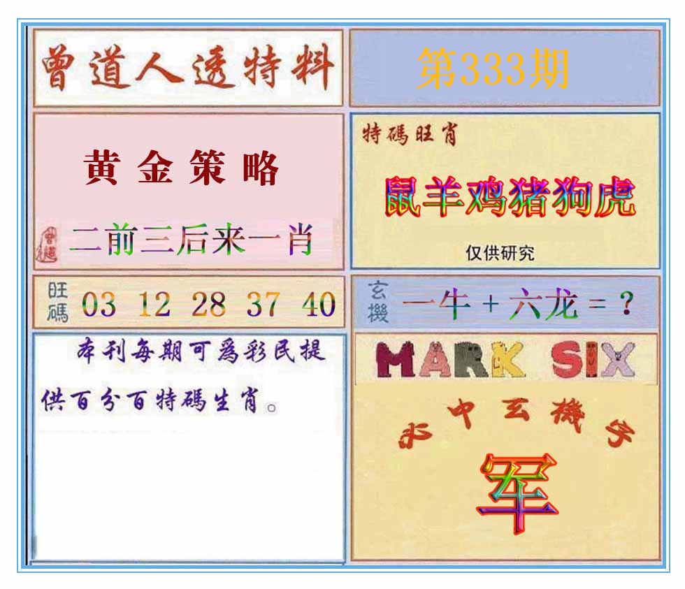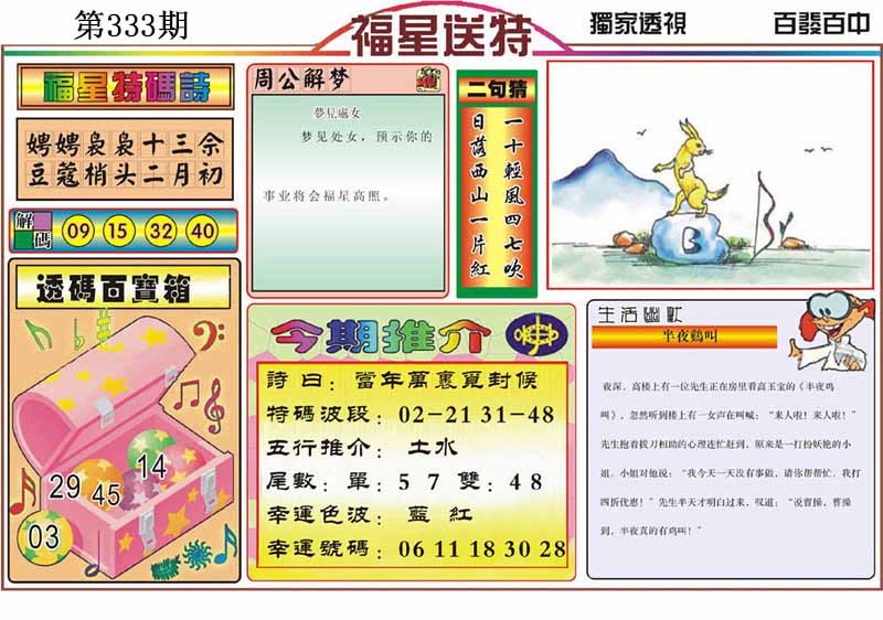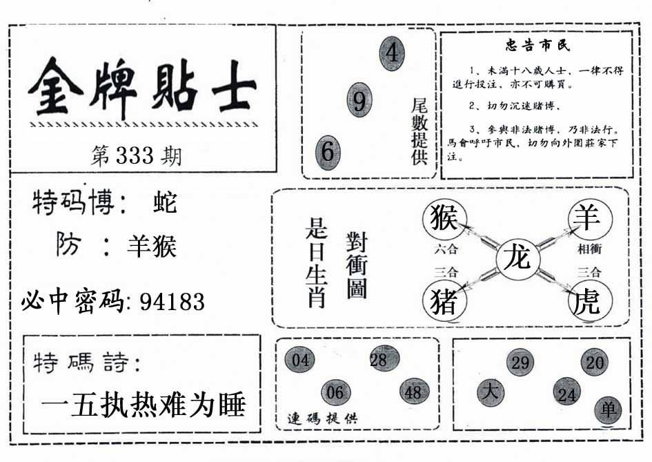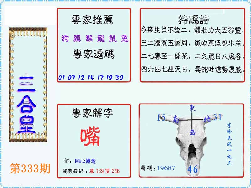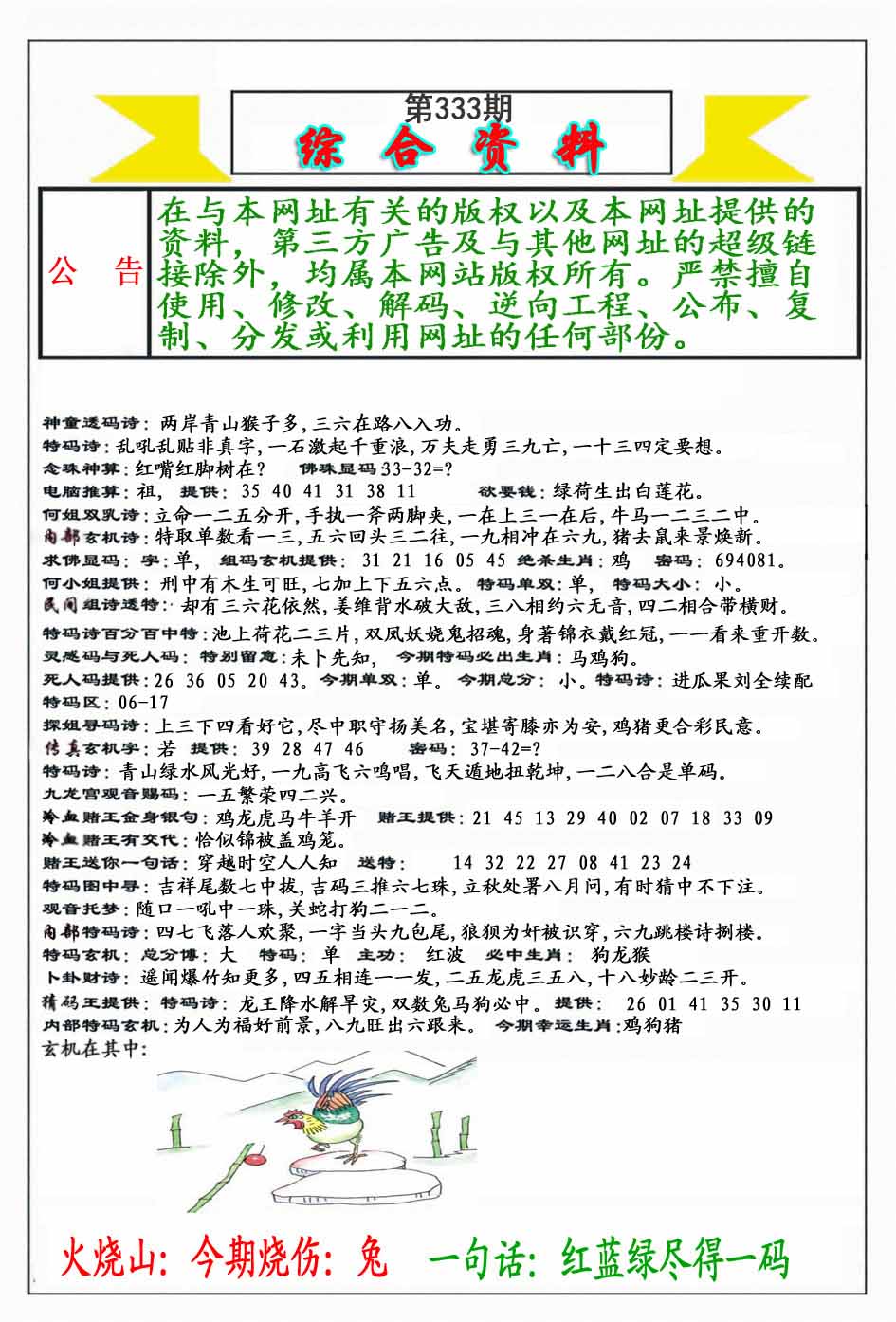 | 333期:《主攻:内幕规律平特肖:<马>下50万》! | ||