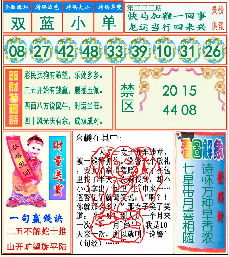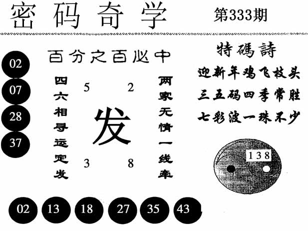 | 333期推荐五码:<14 42 28 17 39>大胆下注十万让你赚百万!