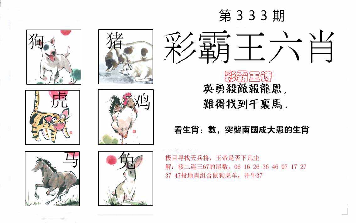 329期:【另版跑狗】开兔39 跑狗九肖:蛇龙马狗猪虎鼠鸡兔 跑狗七肖:蛇龙马狗猪虎鼠 跑狗五肖:蛇龙马狗猪 跑狗三肖:蛇龙马 12码:31 38 01 08 21 27 32 06 02 48 35 04 |