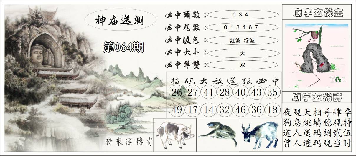 064期:【另版跑狗】开鸡10 跑狗九肖:鼠马狗蛇猴兔牛猪羊 跑狗七肖:鼠马狗蛇猴兔牛 跑狗五肖:鼠马狗蛇猴 跑狗三肖:鼠马狗 12码:20 32 01 33 15 18 47 13 35 05 44 31 | ||