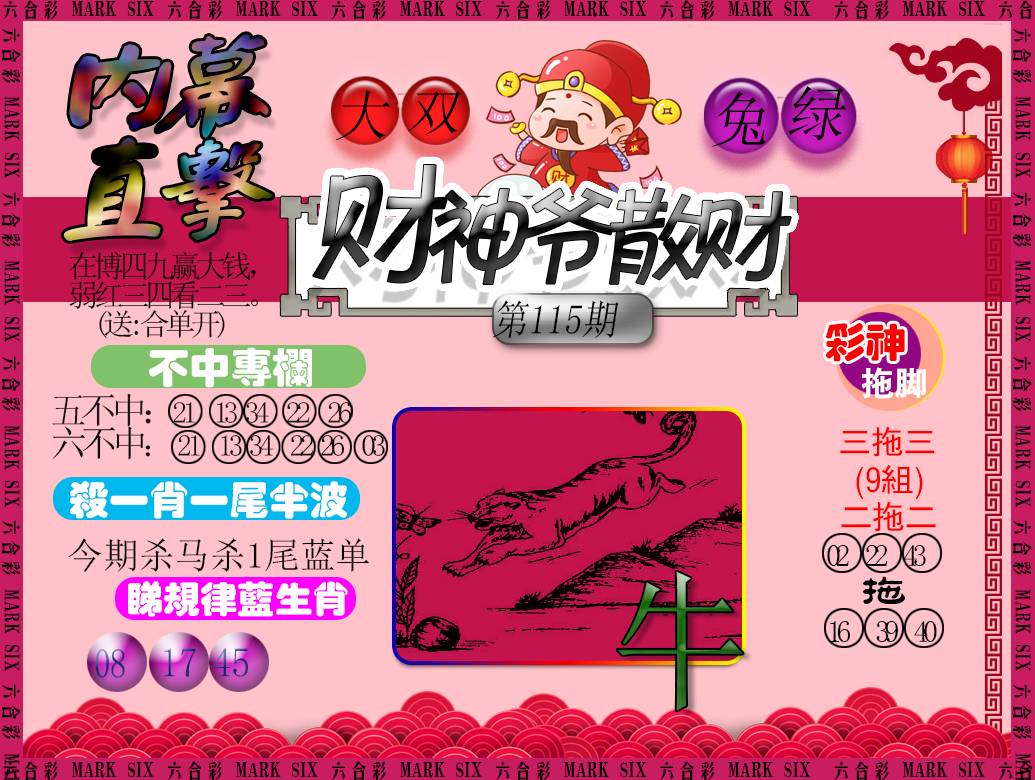 | 114期:《主攻:内幕规律平特肖:<牛>下50万》! | ||