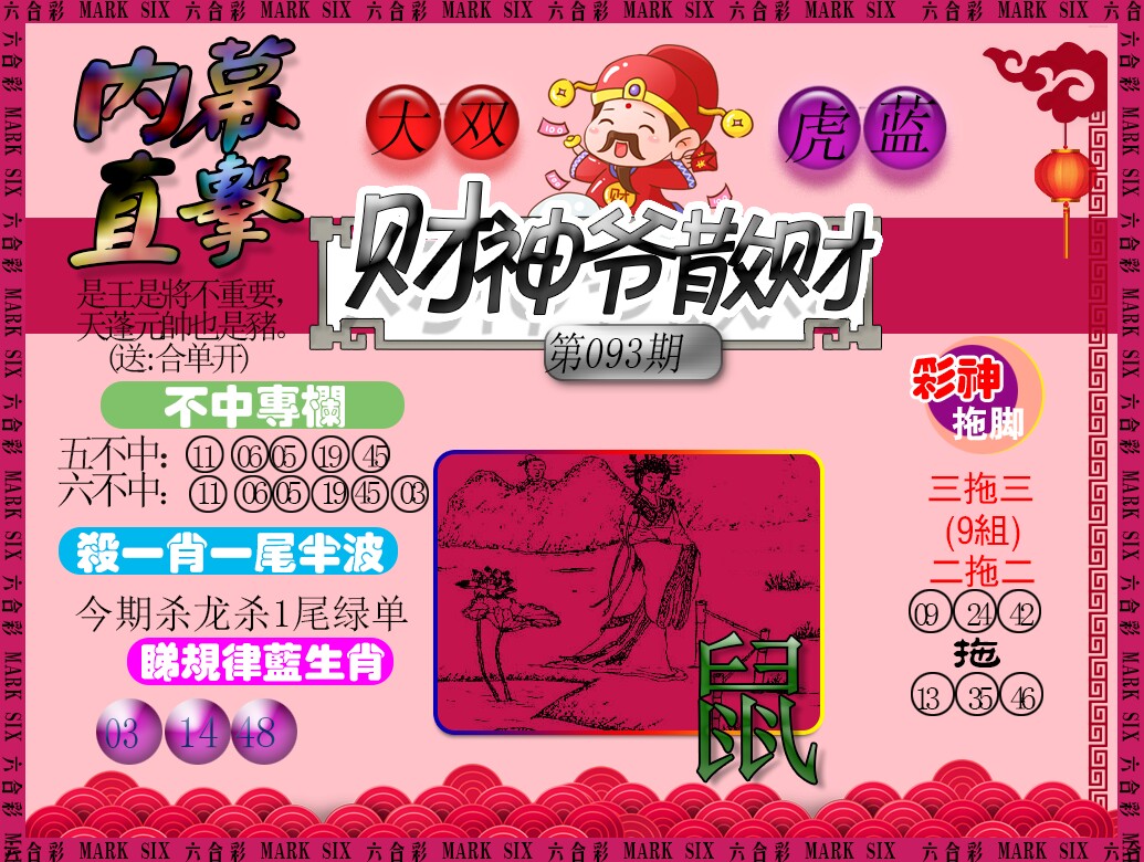 | 092期:精准五不中【14 32 10 46 17】蛇38 |