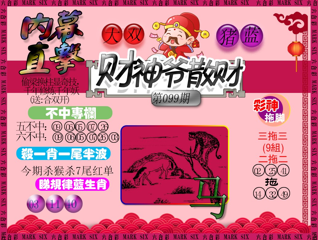 | ③肖:鼠马猴~一跟就中 |